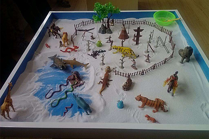 2.在沙盤上做你想做的,看到哪個沙具在和你說話,你就將它擺在沙箱上。